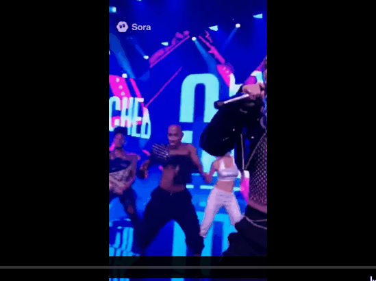 Output: Viral-ready clip featuring YOU performing in a neon-lit nightclub with backup dancers, flashing lights, and a professional AI voice syncing to a hit track