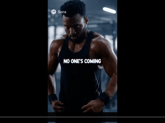 Output: High-energy short-form clip with AI-generated fitness visuals, bold motivational captions, a deep cinematic voiceover, and epic background music